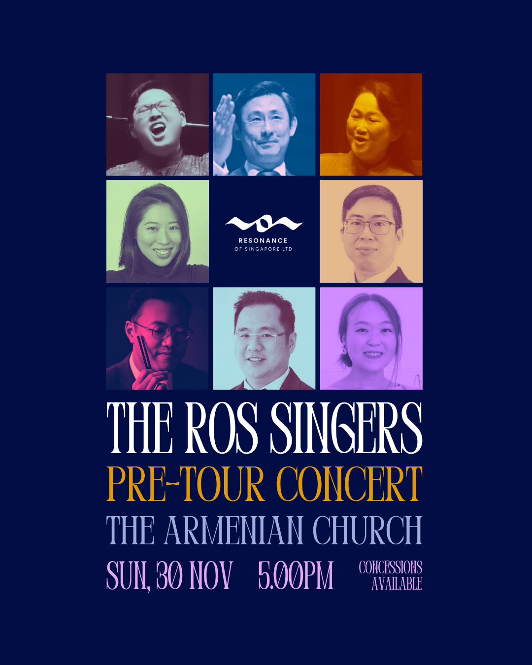 The ROS Singers warmly invites you to a special pre-tour concert held in the serene and historic Armenian Church. This intimate performance offers Singapore audiences the first opportunity to hear the full programme the ensemble will present during its upcoming Taiwan tour.